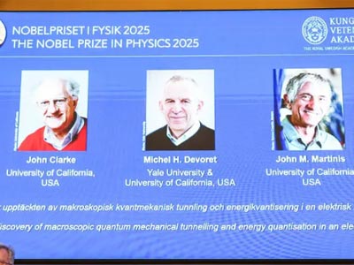 The Royal Swedish Academy of Sciences announced on October 7 that three scientists have been awarded the 2025 Nobel Prize in Physics for their contributions to quantum mechanics. This is a photo taken at the 2025 Nobel Prize in Physics announcement in Stockholm, Sweden, on October 7.