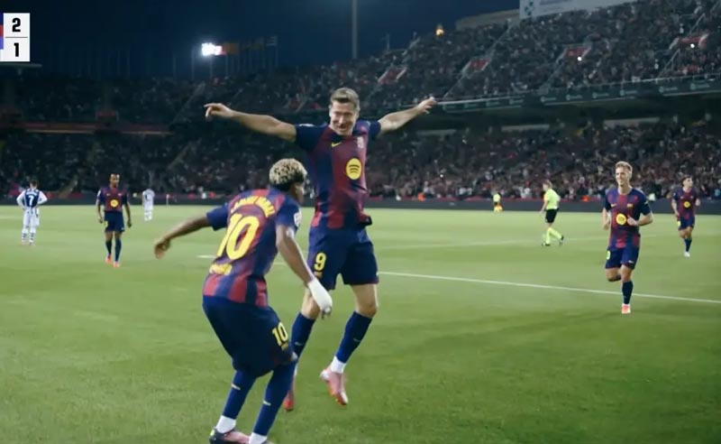 Although Real Sociedad's performance since the start of the season has been poor, the team's fighting spirit is not lacking. Barcelona dominated the match throughout, but Real Sociedad scored first. Barcelona then stepped up their attacking tempo, and Koundé equalized! In the second half, Yamal, who had missed several games due to injury, returned to the pitch and quickly assisted Lewandowski to put the game ahead. At the end of the match, Barcelona came from behind to defeat Real Sociedad 2-1, surpassing Real Madrid at the top of the table.