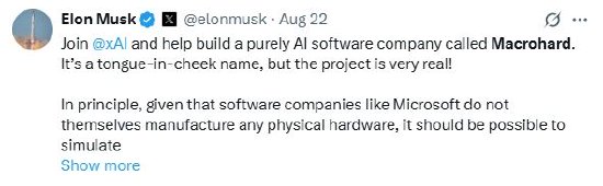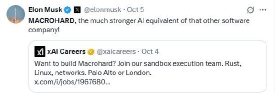 Just earlier this month, he retweeted a job posting for MACROHARD and jokingly wrote, "MACROHARD, a far more powerful AI counterpart than that software company!"