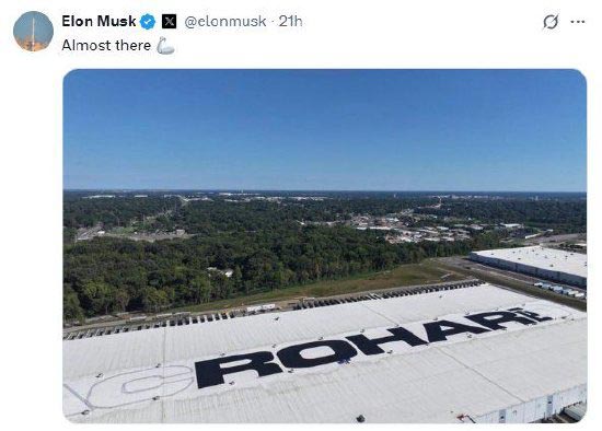 The image shows the word "MACROHARD" being spray-painted. Previously, he responded to a netizen, saying, "We are literally spray-painting MACROHARD on the roof of the Colossus II supercomputing cluster in Memphis, in fonts so large you can see it from space."
