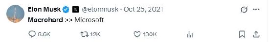 As early as 2021, he jokingly posted, "Macrohard>>Microsoft." Musk reportedly has a feud with Microsoft founder Bill Gates. "MACROHARD" is a play on Microsoft's company name.