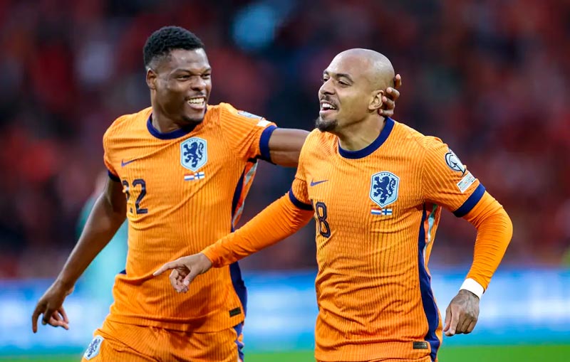 October 12, 2025, the eighth round of the first group stage of the 2026 World Cup European Qualifiers took place, with the Netherlands hosting Finland. In the first half, Depay assisted on a pass, and Malen fired in a right-footed shot from just outside the penalty area to open the scoring for the Netherlands. Depay then took a free kick, and Van Dijk headed home. Kluivert's shot hit Tenjo's arm in the penalty area, earning the Netherlands a penalty, which Depay converted. In the second half, Weghorst's goal was disallowed. In the final moments, Xavi Simons assisted, and Gakpo scored with a powerful shot. Ultimately, the Netherlands easily defeated Finland 4-0 at home, maintaining their lead in the group.