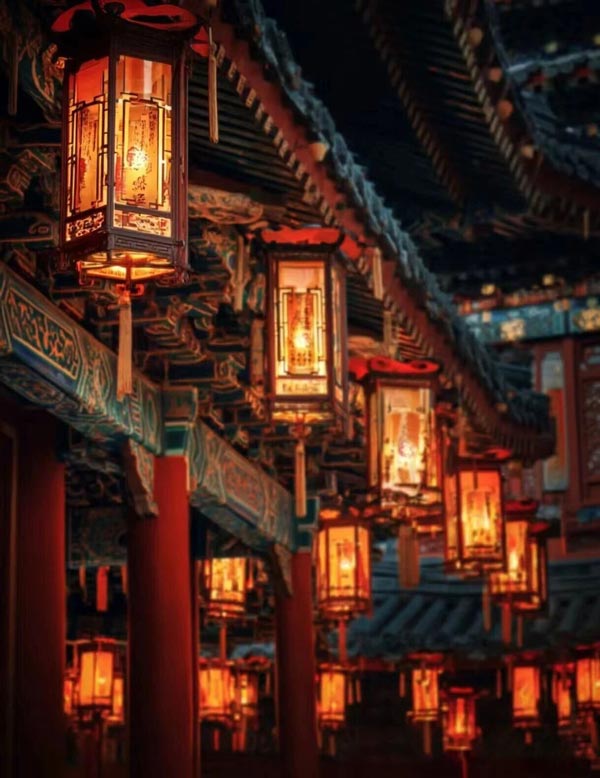 After the Sui and Tang dynasties, during the Lantern Festival, every household hung precious lanterns, each ablaze with dazzling brilliance, each vying for attention with its own splendor.